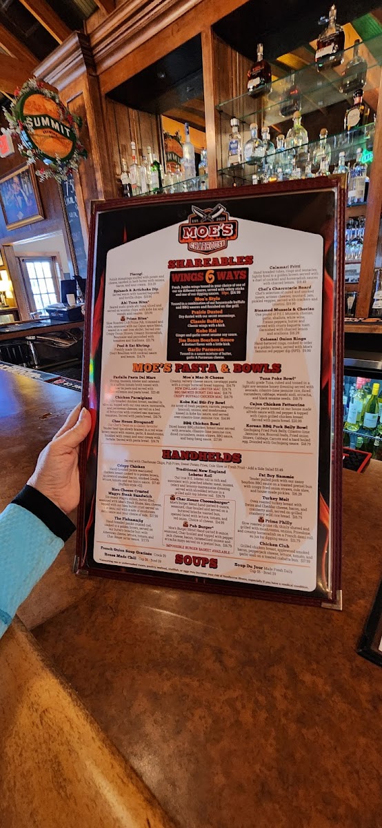 “ Like I said in an earlier review which I had to delete in order to post this one, I've been a customer since 2015 when it was originally Axle's and was disappointed when they shut down around the pandemic. Moreover I was skeptical of Moe's when they took over. While they don't have the menu that is vast like The Cheesecake Factory or Houlihan's, the menu hits all the bases regardless of your preference(s). The restaurant is clean, the bar area is busy and noisy, and overall it's a pleasant experience with one particular hiccup that I'll address later in the review. Last night, I ordered the prime rib with a baked potato and salad. Hands down this was the best meal that I've had in 2025. The bar prices are also very reasonable. There seems to be one issue that I've read repeatedly and experienced last night. There seems to be a "disconnect" in the front of the house with the servers. I sat down at a bar table and waited probably 10 or 15 minutes before I was even acknowledged and I believe there were two or three servers and I think all three were taking care of the meal and drinks during the dinner visit. I should note that the manager at one point did do a table visit. I'm sure in time they'll get this worked out somehow. ”